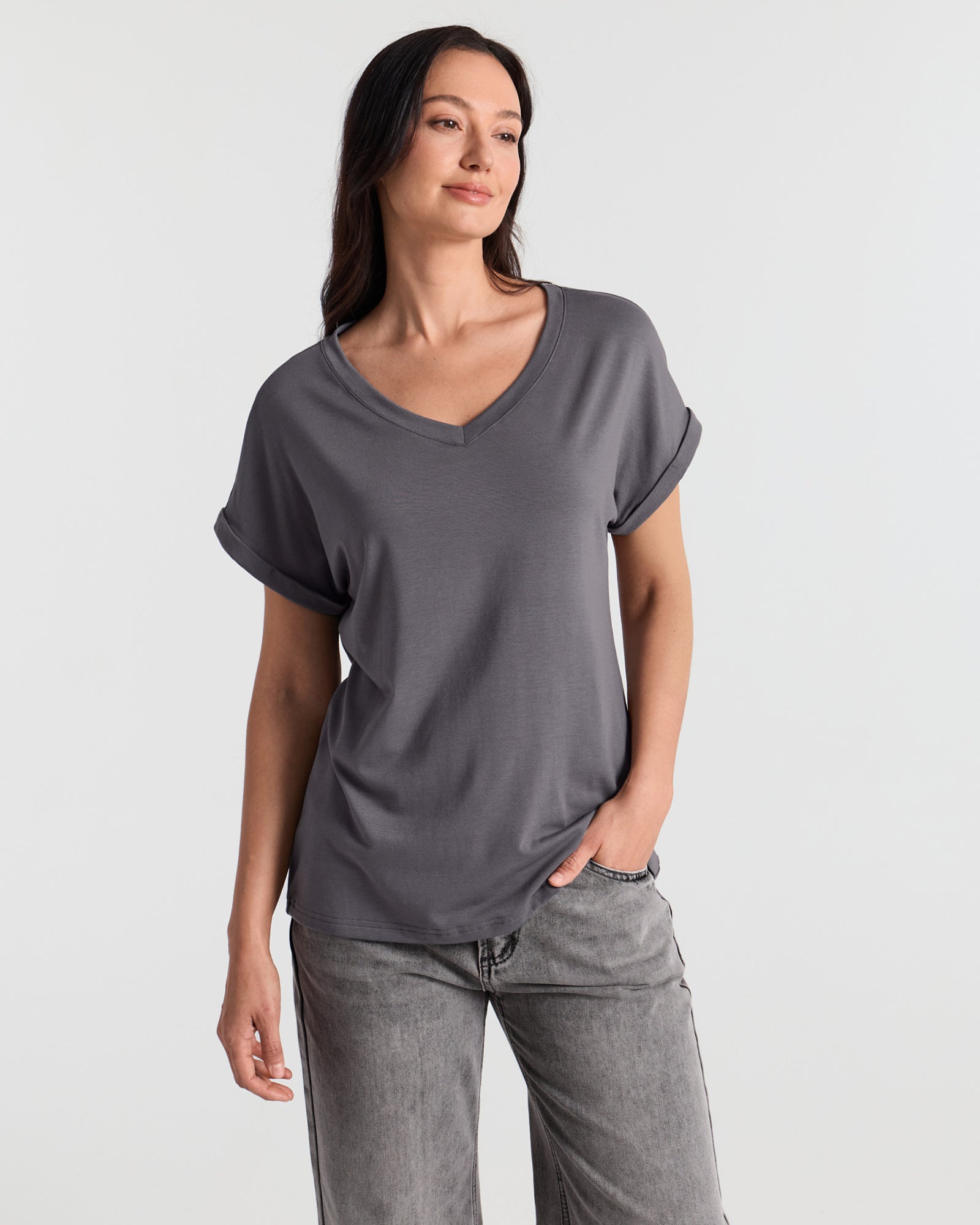 V Neck Batwing Relaxed T-Shirt