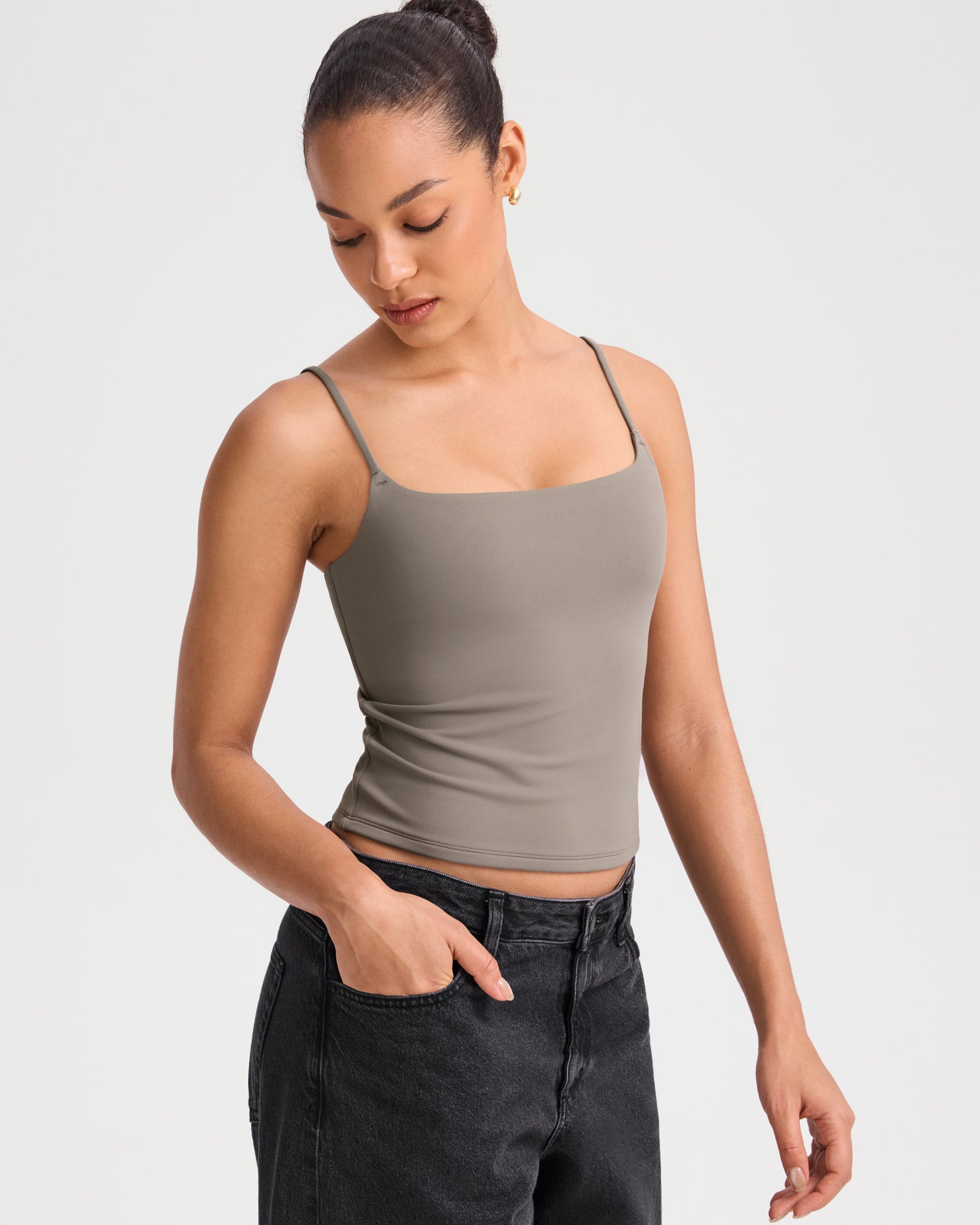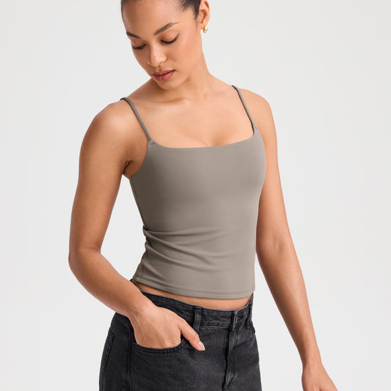 Spaghetti Straps Double Layer Crop Cami